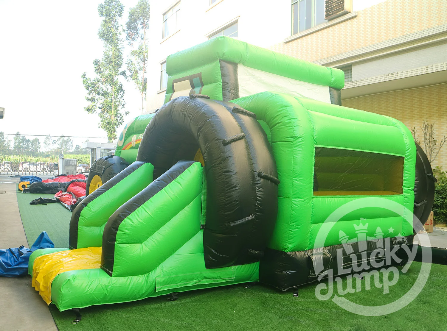 Dai vita al fascino e all'eccitazione della campagna con PANGAOFattoria avventura casa di rimbalzo con scivolo-Un'attrazione giocosa e coinvolgente che combina il divertimento rimbalzante con uno scivolo elettrizzante in un vivace ambiente a tema agricolo.